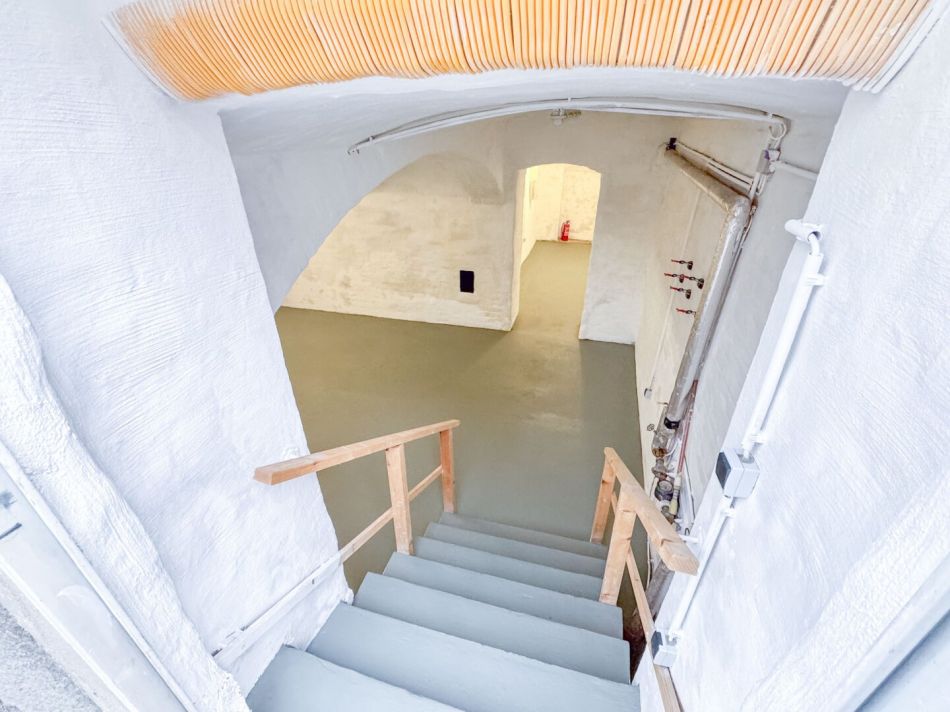 - einem 32 m2 großen Raum mit der Treppe zur Straße