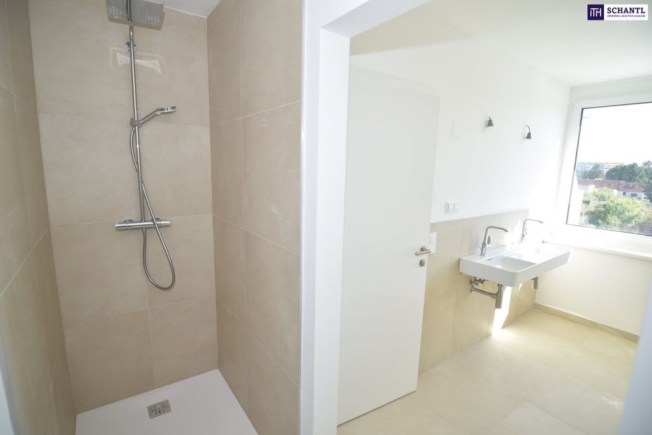 Über den rund 9 Quadratmeter großen Vorraum gelangt man in die zentral gelegene Wohn-Essküche, die mit etwa 44 Quadratmetern den Mittelpunkt der Wohnung bildet. Der offene Koch-, Ess- und Wohnbereich bietet viel Platz für gemeinsames Wohnen und ist dank der großzügigen Raumgestaltung besonders hell und einladend. Von hier aus ist auch die südseitig ausgerichtete Loggia direkt begehbar, die den Wohnraum ideal erweitert und zu sonnigen Stunden im Freien einlädt.