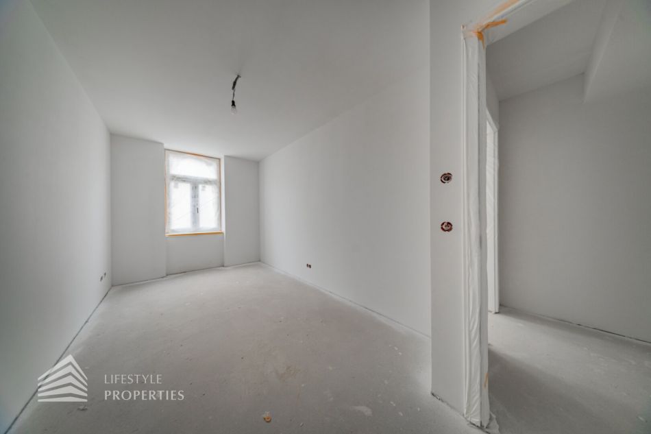 Diese helle 4-Zimmer Wohnung mit ca. 106 m² befindet sich im 2. Liftstock, eines charmanten modernisierten Gründerzeithauses, in welchem 9 Wohnungen mit Wohnflächen zwischen 95 m² und 130 m² mit hochwertiger Ausstattung zum Verkauf gelangen. Die Wohnfläche gliedert sich in einen Vorraum, eine Wohnküche, drei Zimmer, ein Badezimmer, einen Abstellraum und eine separate Toilette. Zusätzlich dazu bietet Ihnen das Objekt einen ca. 10 m² großen Balkon. Alle Wohnräume sind mit hochwertigem Eichenparkett ausgestattet, während das Badezimmer mit zeitlos eleganten Fliesen versehen ist. In der gesamten Wohnung sorgt eine Fußbodenheizung für angenehmen Komfort.
