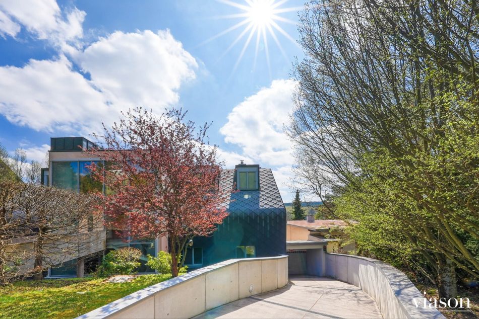 Von hier aus betreten Sie die sonnige Südterrasse und den angrenzenden Garten – eine grüne Oase mit herrlichem Ausblick, die zum Entspannen einlädt.