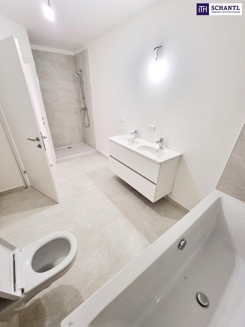 Auf der 2.Ebene befindet sich der private Bereich und teilt sich dieser in ein stylisches Badezimmer mit Dusche, Badewanne, 2.WC und Waschmaschinenanschluss, sowie 2 getrennt begehbare Schlafzimmer.