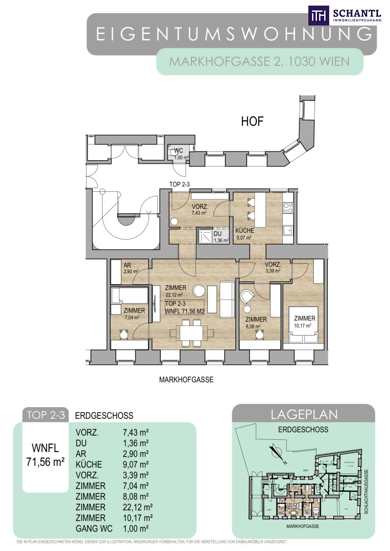 Wohnfläche: ca. 71,56m² + großes Kellerabteil: ca. 6,85m²