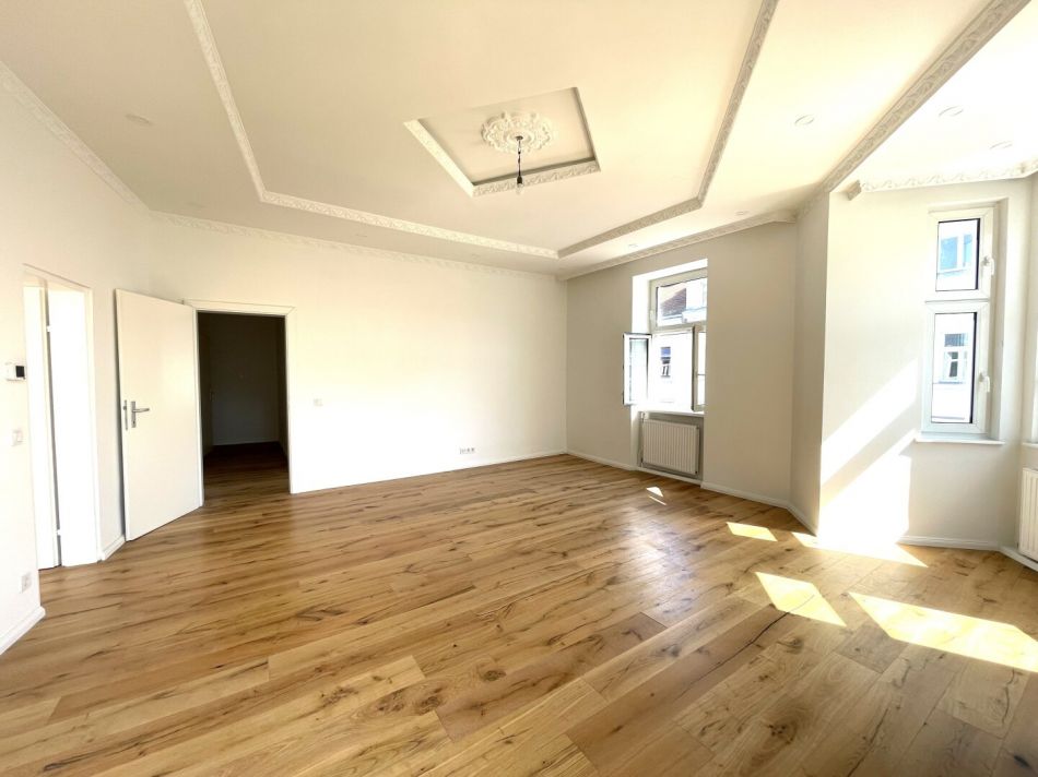 Diese grosszügige und lichtdurchflutete 3 Zimmer Wohnung befindet sich in einem schön sanierten Altbau in der Klosterneuburger Straße in 1200 Wien, im 3. Stock. Die Wohnung besticht durch das große Wohnzimmer (ca. 31 m2) mit mehreren Fenster, einem stilvollen Erker und Stuckdecke, die das Altbauflair perfektionieren. Sie betreten die Wohnung durchs Vorzimmer und gelangen anschließend direkt in die neue Küche und dem danebenliegenden Badezimmer. Durch ein weiteres Vorzimmer, das auch Platz für Stauraum bietet, können Sie linkerhand ein großes Zimmer betreten, dass sich als Esszimmer oder Schlafzimmer eignet. Vom Vorzimmer gerade aus betreten Sie das große Wohnzimmer, von diesem aus Sie ein weiteres, kleiners Zimmer begehen können.