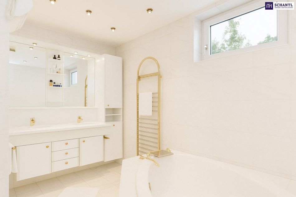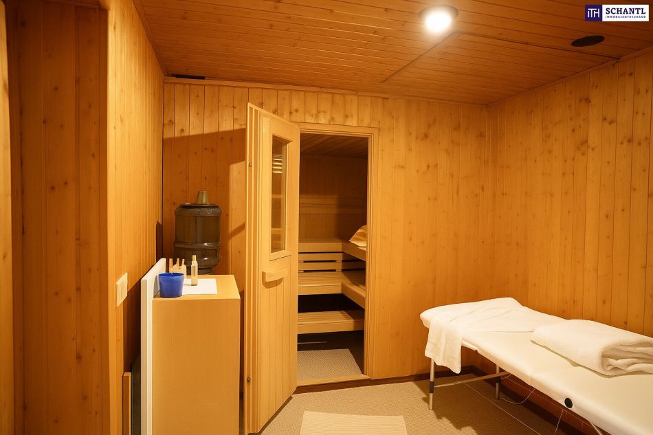 Erweitert wird die Wohnfläche durch das ca. 76m² große Kellergeschoß, welches neben Stauraum auch einen Wellnessbereich mit Sauna und Whirlpool + Dusche bietet.