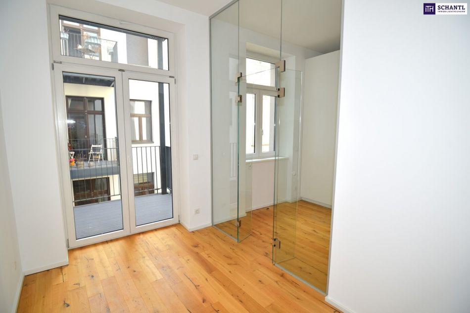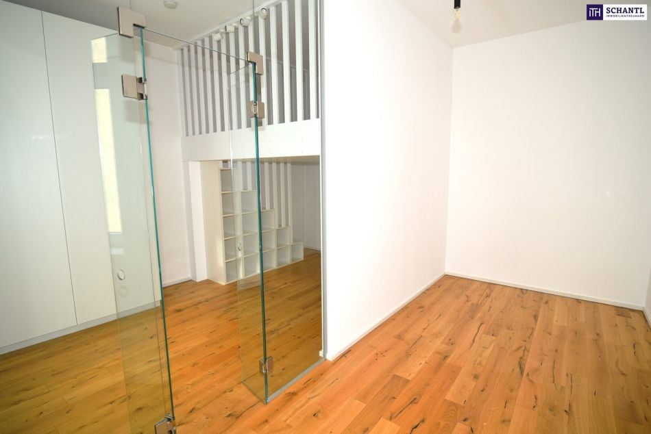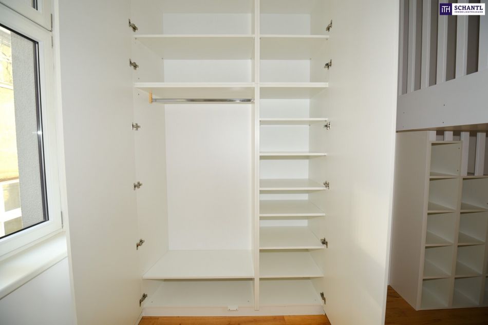 Die Wohnung bietet eine moderne Einbauküche, die bis zur Decke geplant wurde und viel Stauraum schafft. Ein vom Tischler gefertigtes Hochbett mit integriertem Stauraum sorgt für eine clevere und zugleich stilvolle Nutzung des Wohnraums. Besonders einladend ist der direkte Zugang zum ca. 5,9 m² großen Balkon, der zusätzliche Wohnqualität schafft.