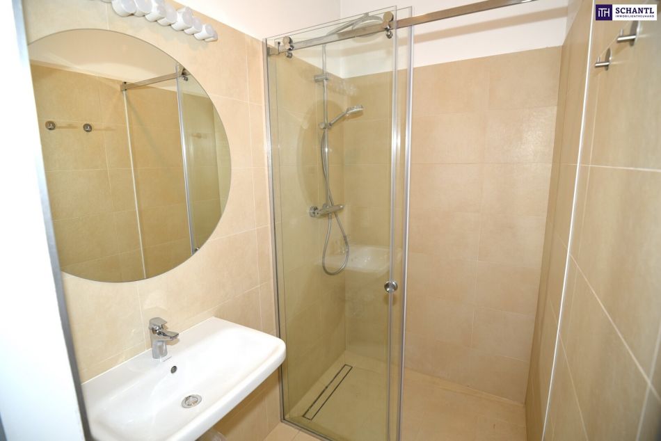 Das moderne Badezimmer verfügt über eine komfortable, barrierefreie Dusche, ein separates WC sorgt für zusätzlichen Komfort.
