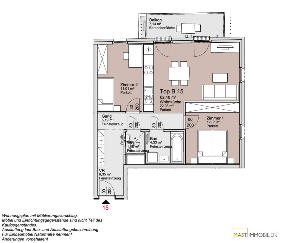 PROVISIONSFREI für den Käufer!Alle verfügbaren Wohnungen finden Sie auf unserer Homepage unter www.mast-immo.at. Um Ihre Suche zu erleichtern, steht Ihnen auf unserer Projektseite www.anderschanze25.at ein Wohnungsnavigator zur Verfügung, der Ihnen hilft, sich einen Überblick über die Lage der einzelnen Wohnungen innerhalb des Komplexes zu verschaffen.