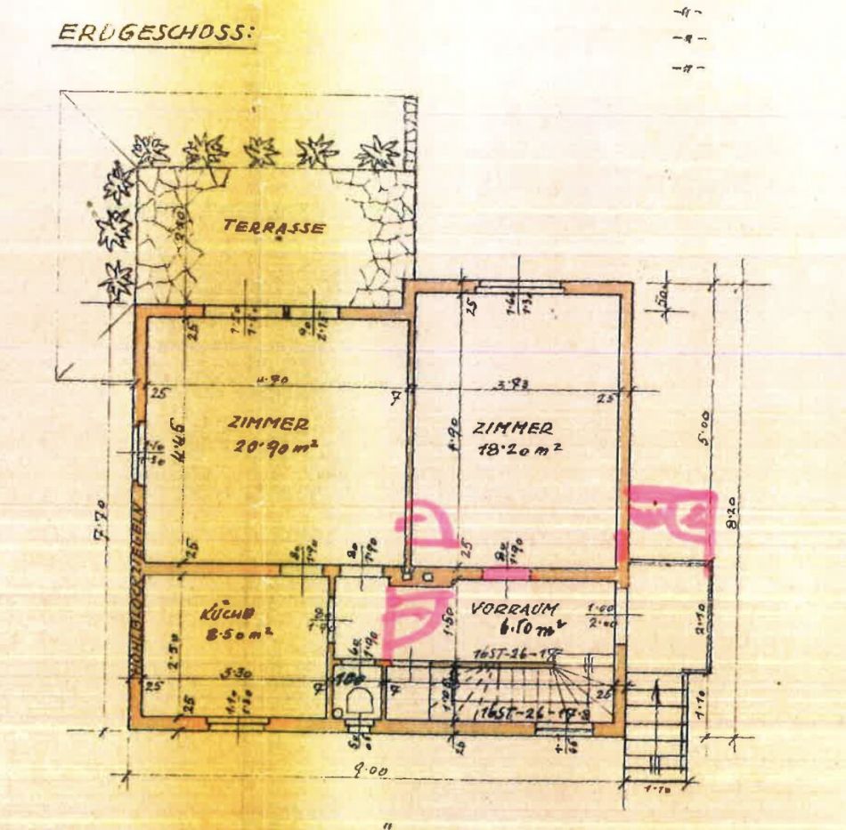 - ein 20,90 m2 großes Zimmer mit Zugang zur zirka 12 m2 großen Terrasse