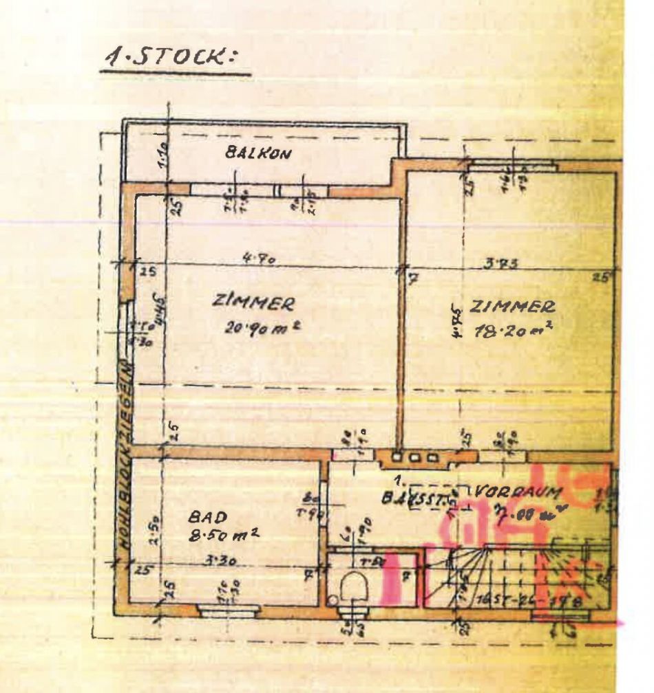 - ein 20,90 m2 großes Zimmer mit Zugang zum zirka 5 m2 großen Balkon