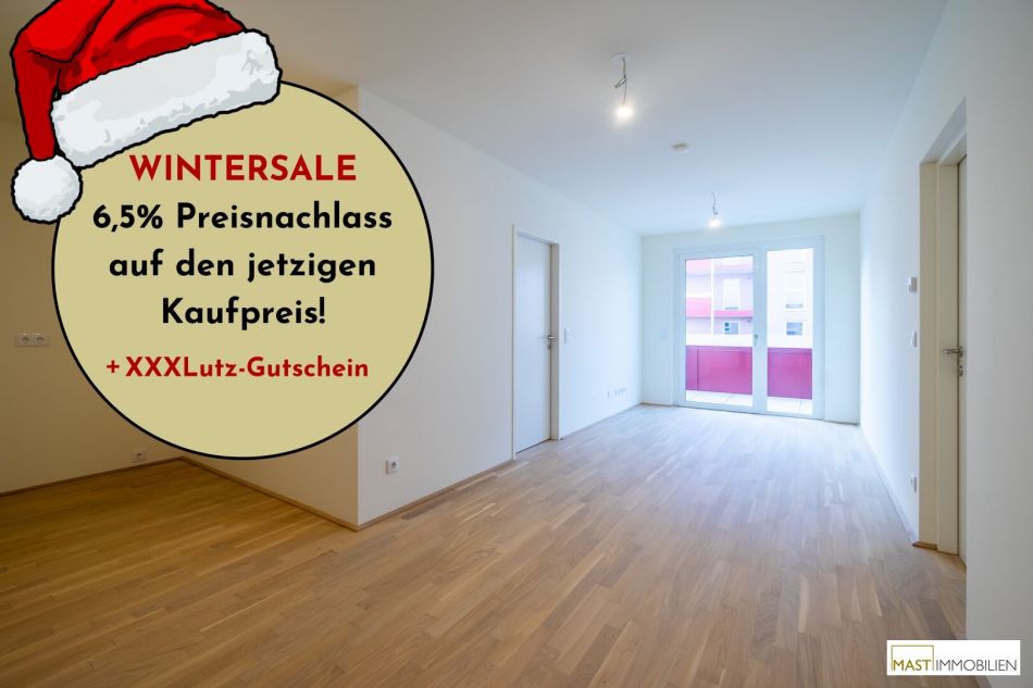 In der kalten Jahreszeit lassen wir die Preise schmelzen: Beim Kauf einer Eigentumswohnung in einem unserer Objekte in der Berresgasse ersparst du dir bis 31.3.2026 die Nebenkosten* und bekommst so jede Wohnung um 6,5% günstiger.