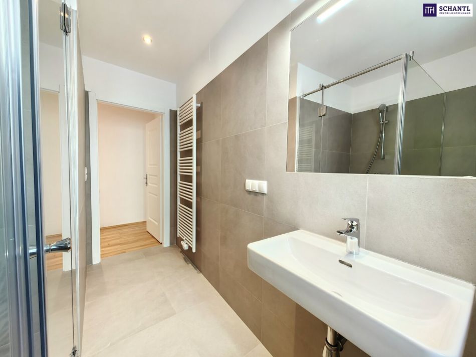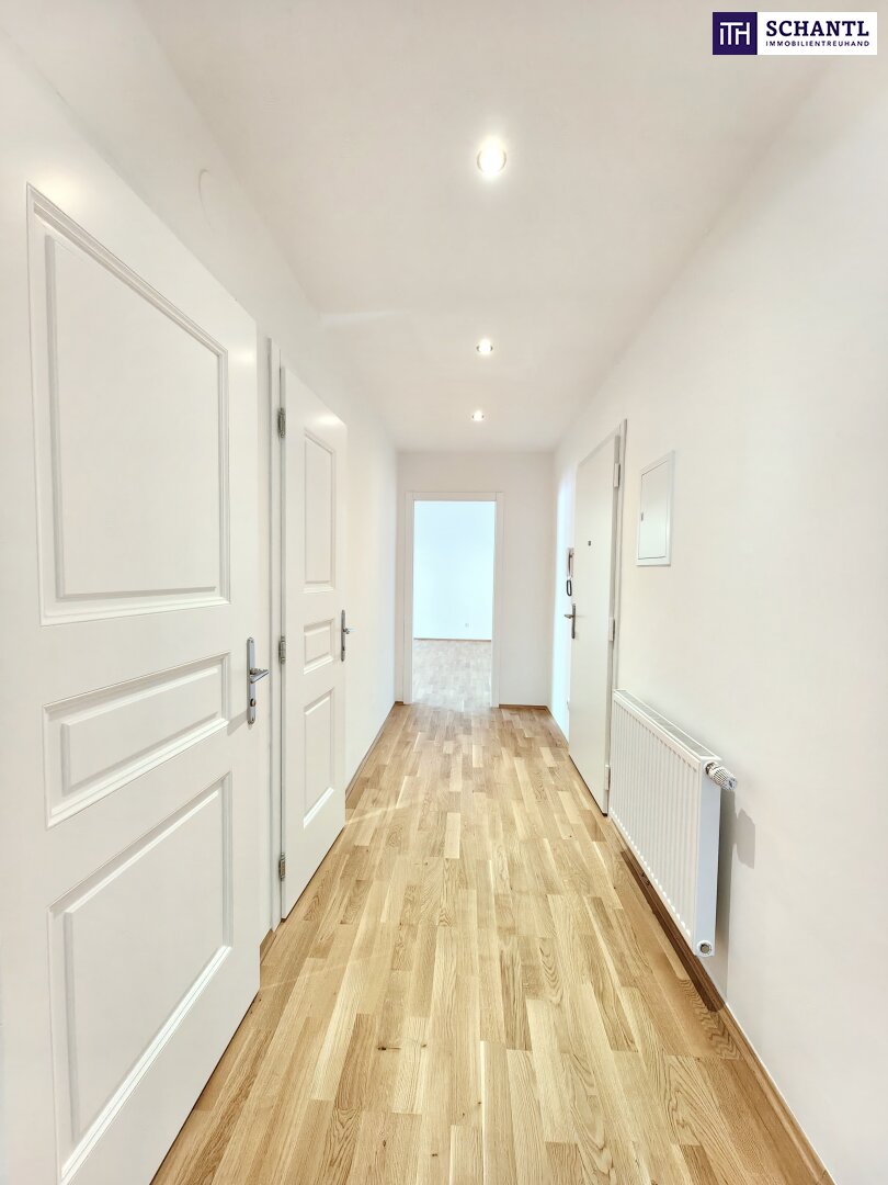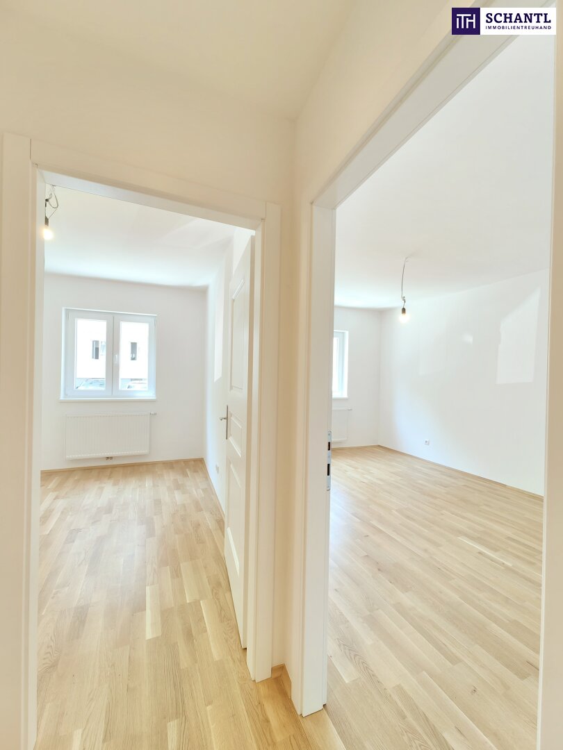 Im Zuge der umfangreichen Sanierung wurde viel Wert auf einen praktischen und gut durchdachten Grundriss gelegt. Gleich im Eingangsbereich befinden sich das WC sowie das geschmackvolle Badezimmer. Die beiden Schlafzimmer sind getrennt vom Vorraum aus zu begehen. Auch die Wohnküche überzeugt durch ihre Großzügigkeit sowie Helligkeit.