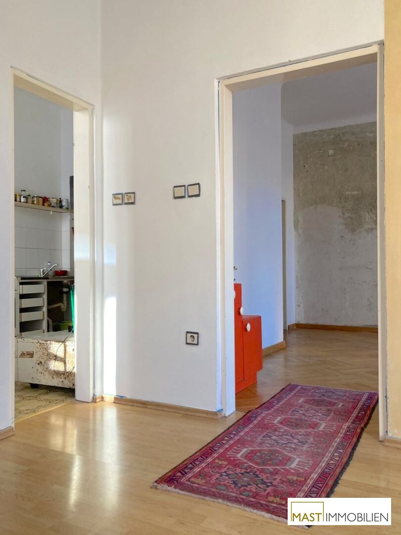 Bei der angebotenen Wohnung handelt es sich um eine renovierungsbedürftige 2-Zimmer Wohnung im 1. Obergeschoss mit insgesamt 60 m2 Wohnfläche. Die Wohnung verfügt aktuell über ein Wohnzimmer, eine separate Küche und ein Schlafzimmer. Mit etwas handwerklichem Geschick, kann man diese Wohnung zu einer kompakten 3-Zimmer-Wohnung umbauen.
