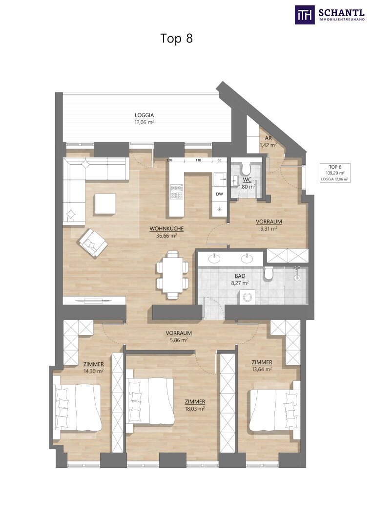 TOP 8 - Nord-Süd ausgerichtete 4-Zimmer-Wohnung mit Loggia im Innenhof
