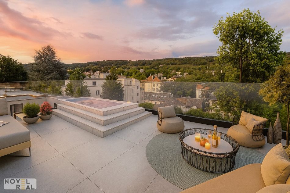 Die Dachterrasse im 2. Dachgeschoß bietet sich optimal für die Installation eines privaten Jacuzzi / Whirlpool an. (optional )