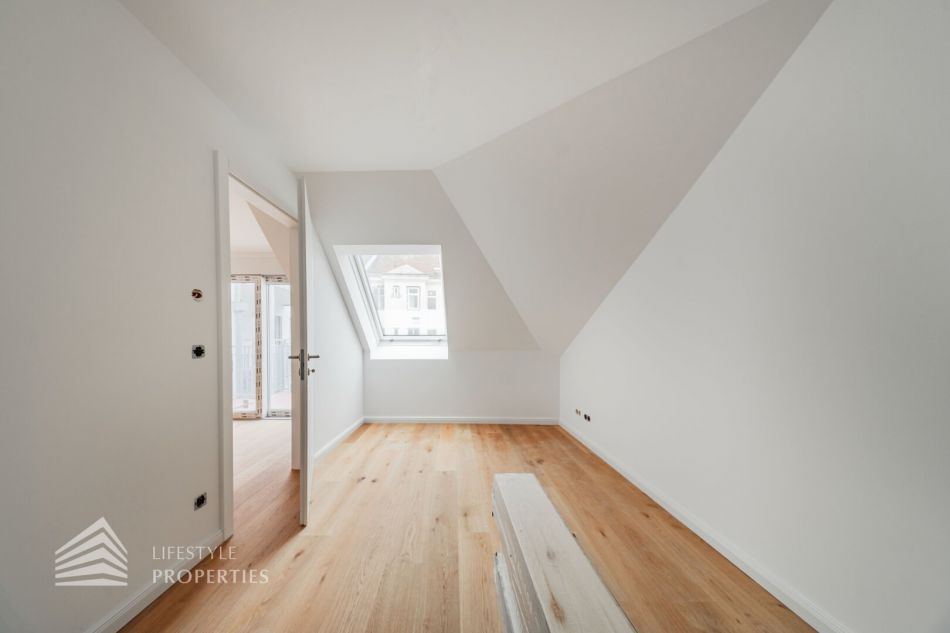 Diese helle 4-Zimmer Wohnung mit ca. 103 m² befindet sich im 3. Liftstock, eines charmanten modernisierten Gründerzeithauses, in welchem 9 Wohnungen mit Wohnflächen zwischen 95 m² und 130 m² mit hochwertiger Ausstattung zum Verkauf gelangen. Die Wohnfläche gliedert sich in einen Vorraum, eine Wohnküche, drei Zimmer, ein Badezimmer, einen Abstellraum und eine separate Toilette. Zusätzlich dazu bietet Ihnen das Objekt einen ca. 10 m² großen Balkon. Alle Wohnräume sind mit hochwertigem Eichenparkett ausgestattet, während das Badezimmer mit zeitlos eleganten Fliesen versehen ist. In der gesamten Wohnung sorgt eine Fußbodenheizung für angenehmen Komfort.