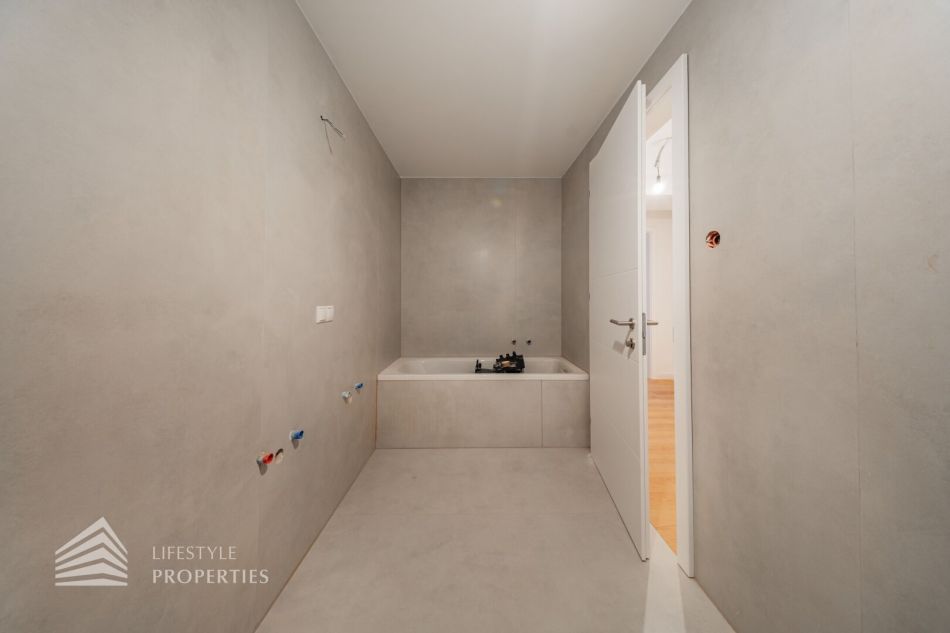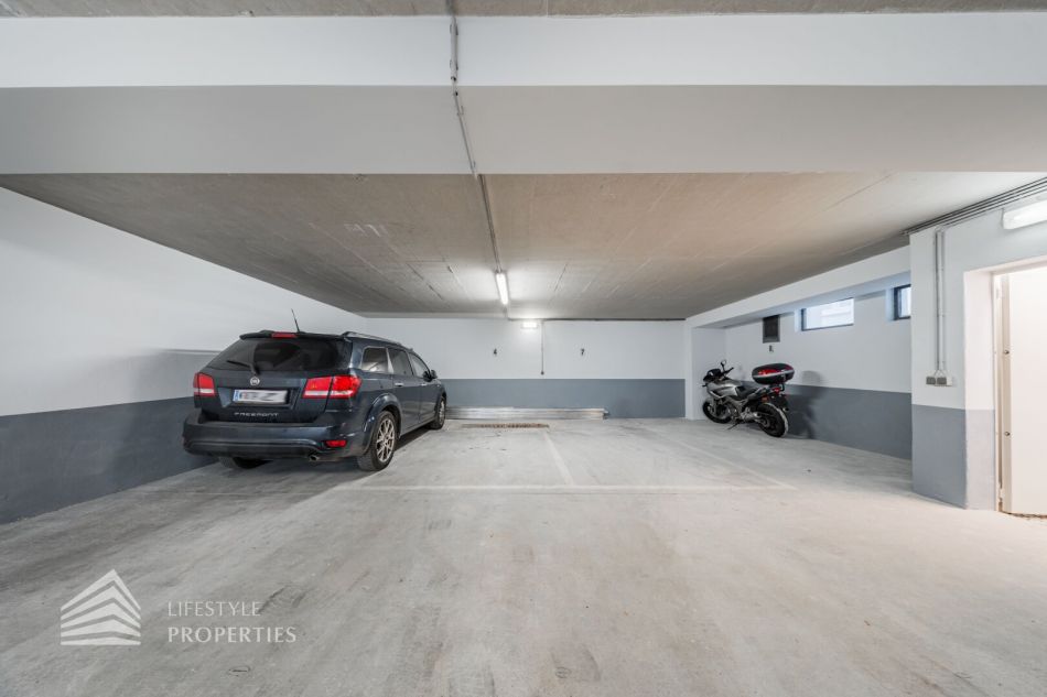 Jede Wohnung verfügt über Freiflächen (Balkone, Terrassen bzw. Grünflächen). Alle Wohnräume sind mit hochwertigem Eichenparkett ausgestattet, während das Badezimmer mit zeitlos eleganten Fliesen versehen ist. In der gesamten Wohnung sorgt eine Fußbodenheizung für angenehmen Komfort. Zusätzlichen Stauraum bietet ein großzügiges Kellerabteil. Im Haus stehen zudem ein Kinderwagen- sowie ein Fahrradabstellraum zur Verfügung. Weiters gibt es eine Garage mit 7 KFZ-Stellplätzen.