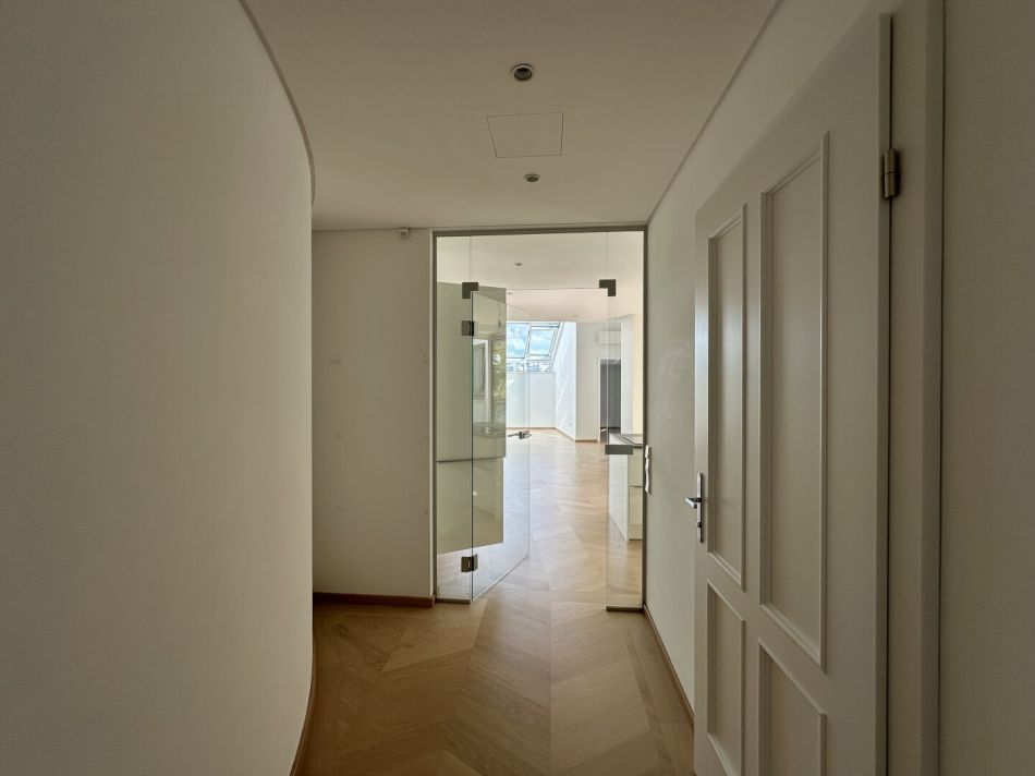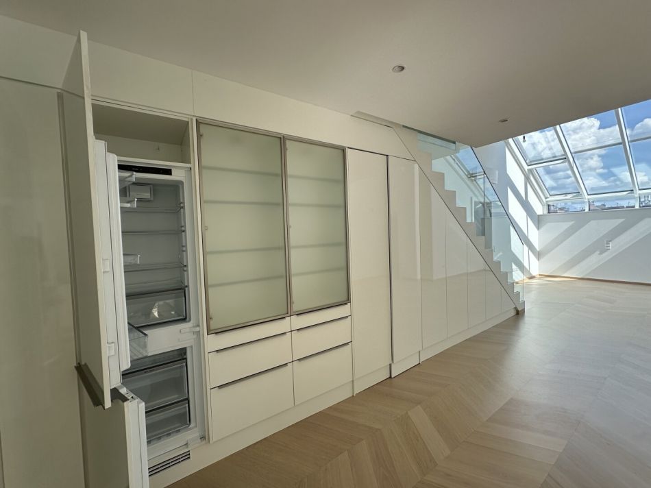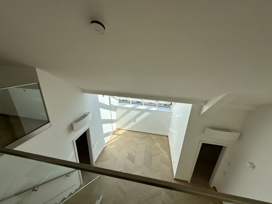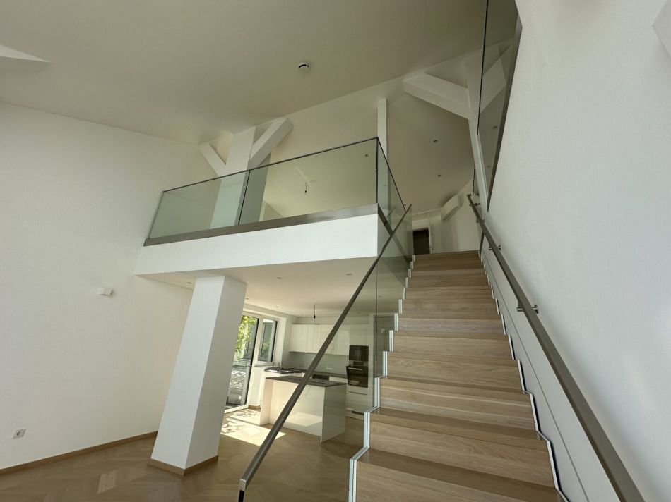 Die architektonische Raffinesse dieser Wohnung erstreckt sich auch im oberen Bereich, wo ein Studio/Galerie, mit eigenem Zugang von Außen, für zusätzlichen Raum sorgt.