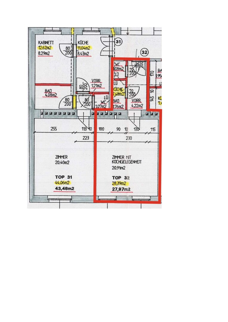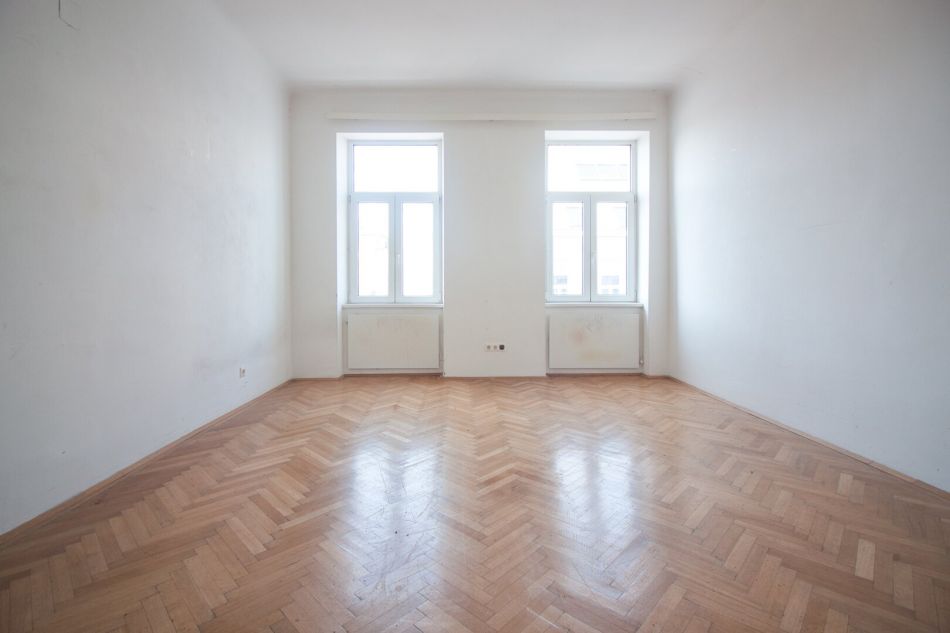 Wie auf den Bildern erkennbar, ist die Wohnung sanierungsbedürftig und es wurde 1996 im Zuge von Umbaumaßnahmen im Haus bereits ein WC und ein Bad in der Wohnung geplant.