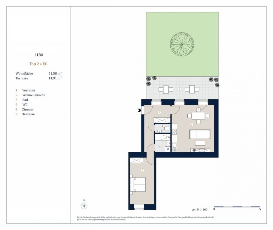 Sie ist ein Erstbezug und befindet sich im EG eines in der Jahrhundertwende erbauten Altbaus. Die Wohnung verfügt über eine Größe von ca. 51 m² und gliedert sich in einen Vorraum, eine Wohnküche, ein Zimmer, ein Bad und ein separates WC. Zusätzlich überzeugt die Wohnung mit einer großzügigen Terrasse. Die Wohnräume sind mit schönem Parkett ausgestattet, die Nassräume sind verfliest. Beheizt wird mittels Fußbodenheizung.