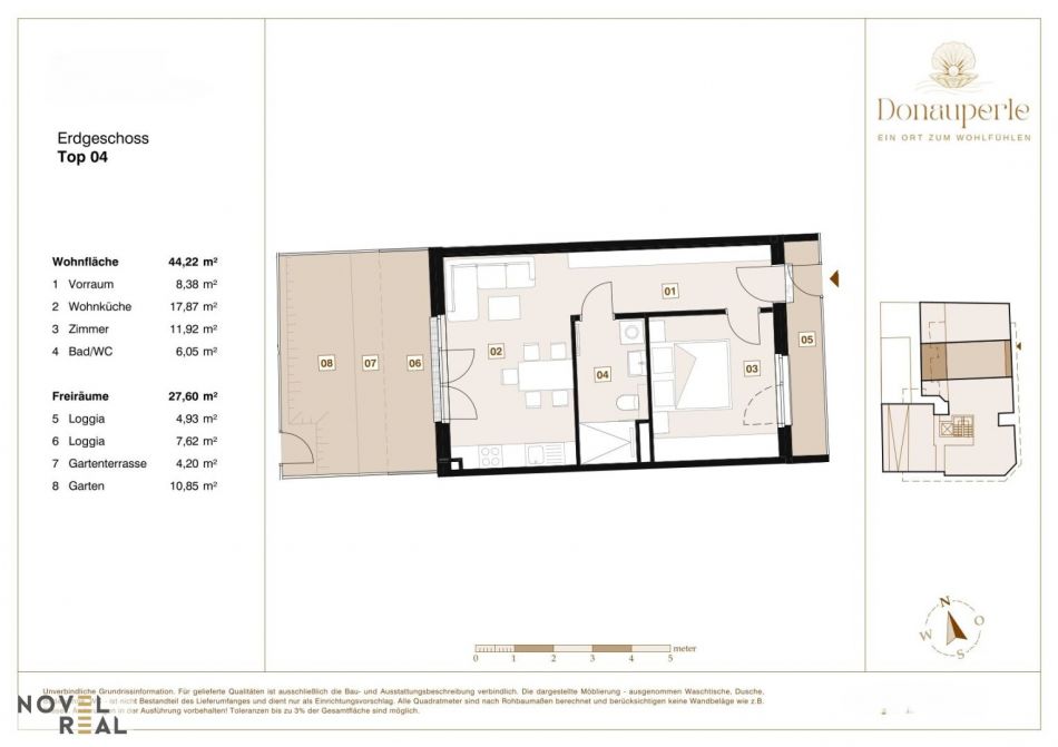 Das Vermittlungshonorar ist ausschließlich bei Zustandekommen eines gültigen Rechtsgeschäfts fällig und vom Käufer an Novel Real Immobilien GmbH zu zahlen. Es wird ausdrücklich auf die Nebenkostenübersicht hingewiesen. Bei den Visualisierungen und Abbildungen der Immobilie (insbesondere von Inneneinrichtungen) kann es sich um Symbolfotos bzw. fototechnisch optimierte Fotos handeln.
