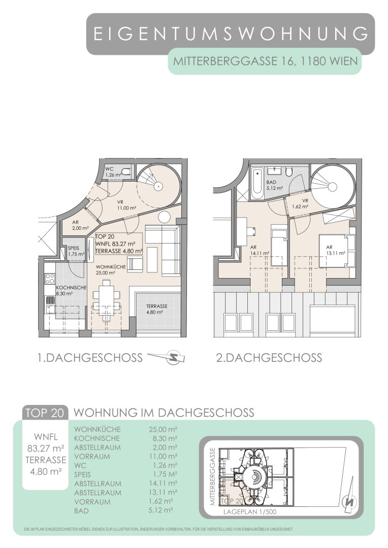 Schöne Dachgeschoss-Maisonette mit 83m², 3 Zimmern & Terrasse in 1180 zu kaufen!!