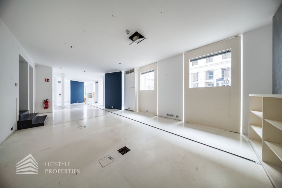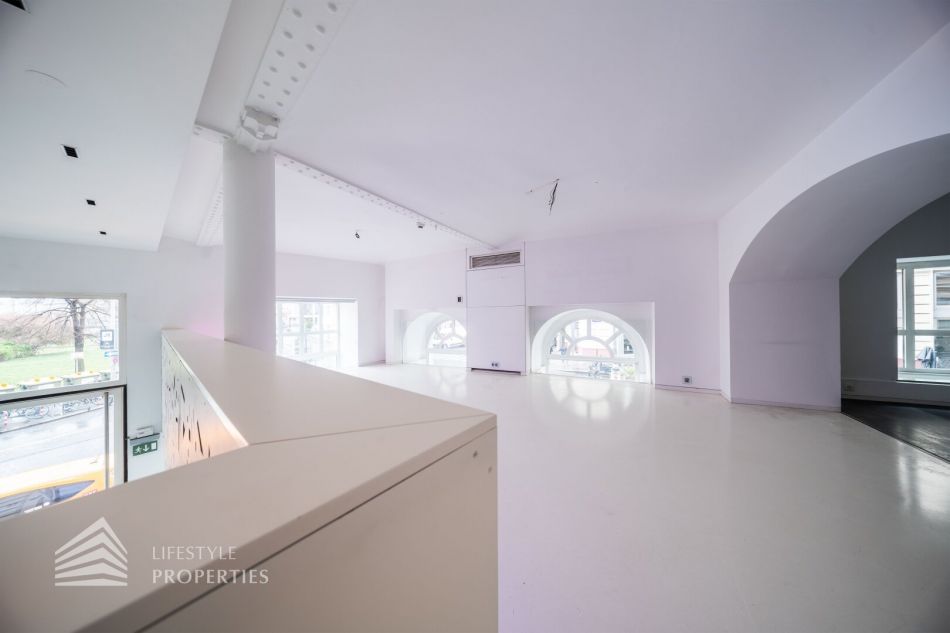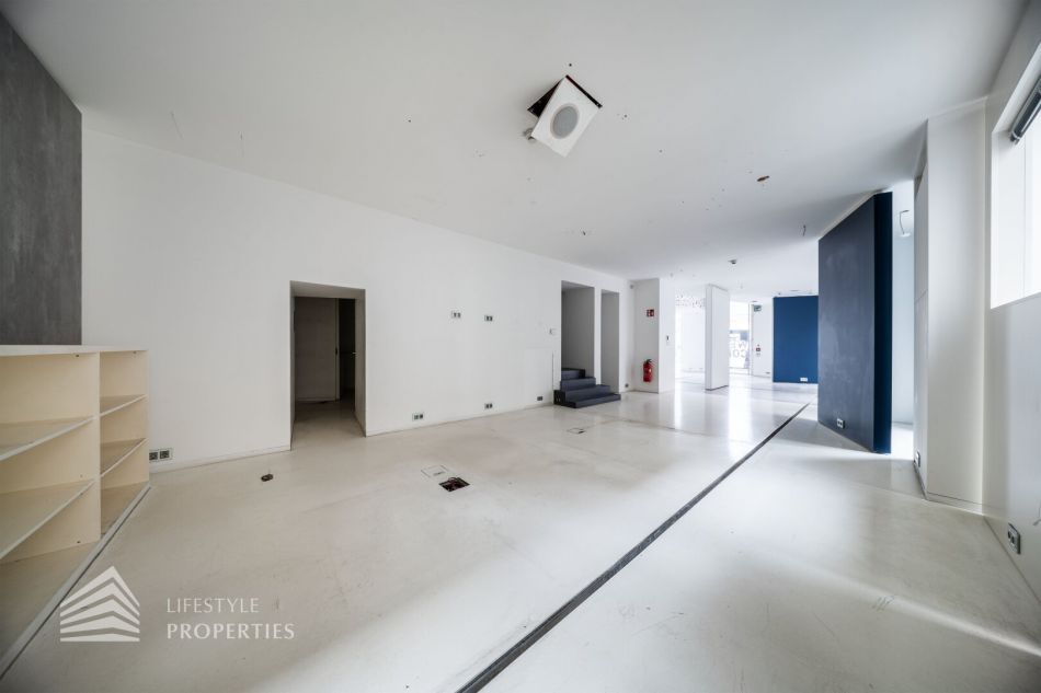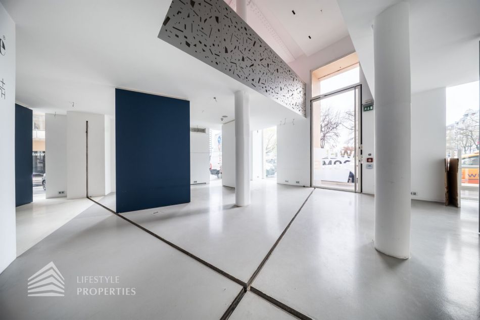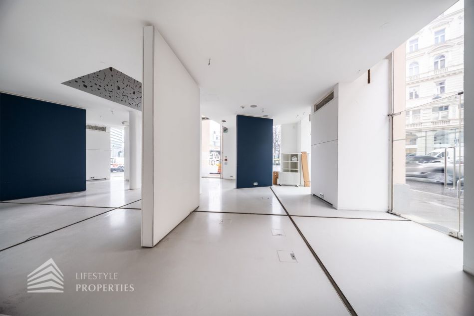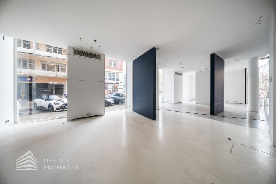 Durch die hohen Räume mit den großen Auslagenfenster ist das Geschäftslokal sehr hell und mit viel Tageslicht durchflutet.