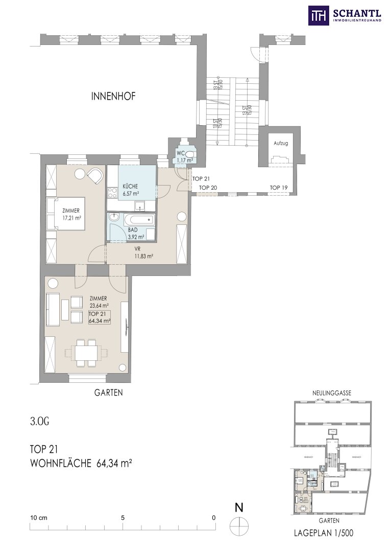 Ihre neue Wohnung in kompletter Hof-Ruhelage wird Sie begeistern und teilt sich in einen geräumigen Vorraum mit Platz für eine Garderobe, ein separates WC, ein Badezimmer mit Badewanne und Waschmaschinenanschluss, ein kuschliges und großes ruhiges Schlafzimmer mit 17,21m² sowie ein geräumiges Wohn-Esszimmer mit 23,64 m² mit Blick ins Grüne und einer extra Küche.
