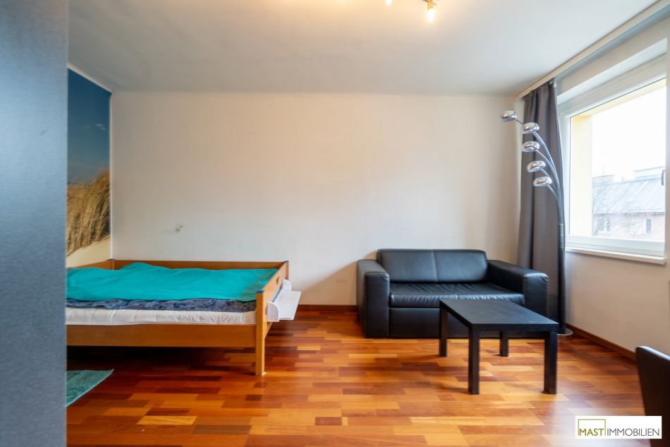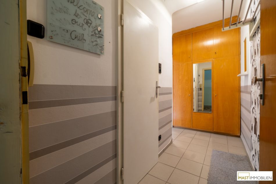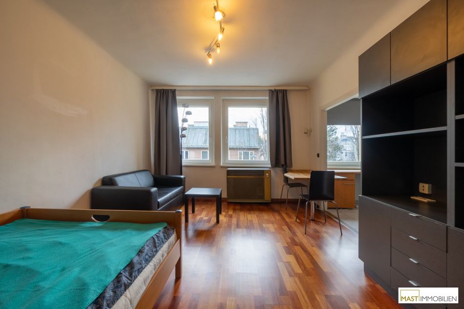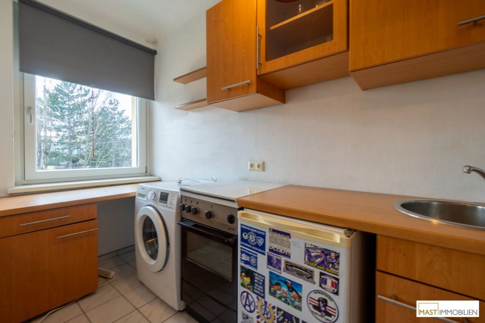 Nach Eintritt in die Wohnung gelangen Sie in ein Vorzimmer mit ausreichend Platz für Ihre Garderobe. Das Wohn- Schlafzimmer ist aufgrund der Sackgasse in Ruhelage ausgerichtet. Die Einbauküche verfügt über eine Waschmaschine und Kühlschrank. Das Badezimmer ist mit einer Dusche & WC ausgestattet. Selbstverständlich ist im Mietpreis ein Kellerabteil inkludiert.