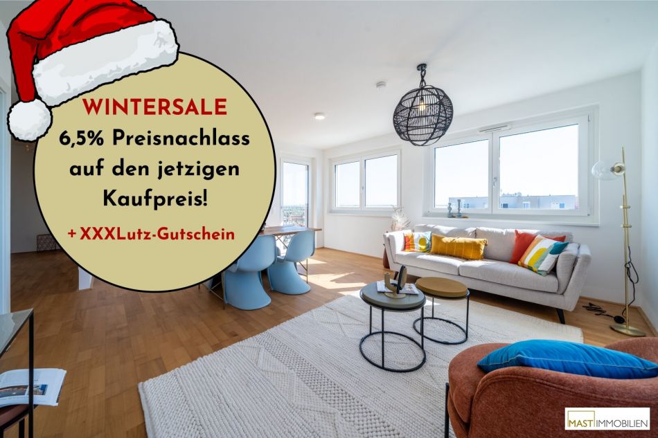 In der kalten Jahreszeit lassen wir die Preise schmelzen: Beim Kauf einer Eigentumswohnung in einem unserer Objekte in der Berresgasse ersparst du dir bis 31.3.2026 die Nebenkosten* und bekommst so jede Wohnung um 6,5% günstiger.