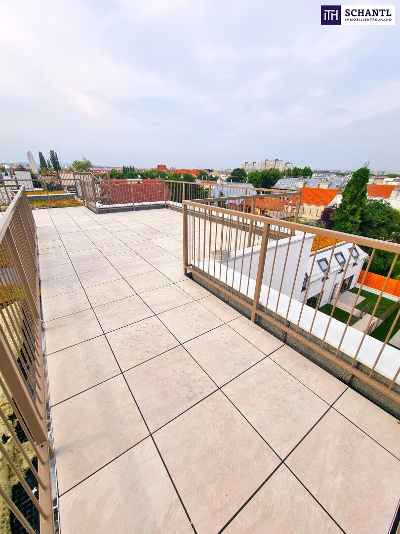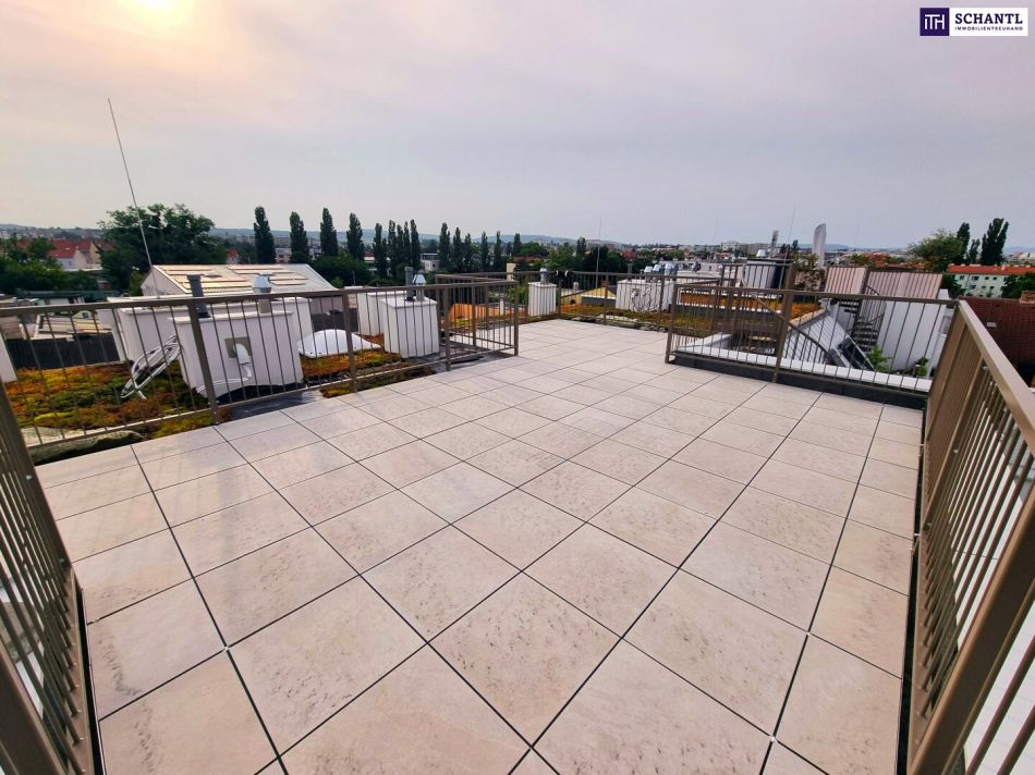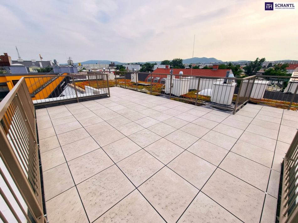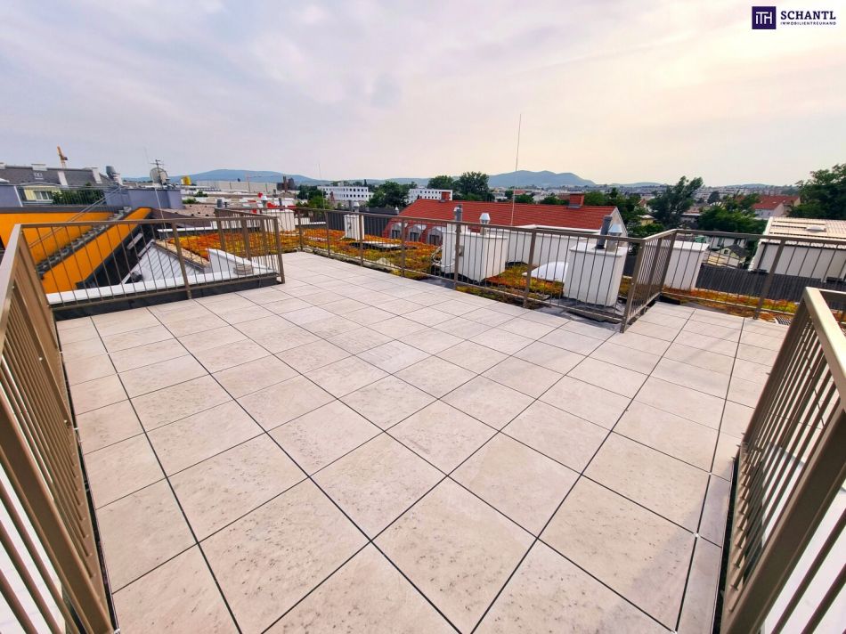 Ihre neue Traumwohnung wird Sie restlos begeistern und teilt sich einen geräumigen Vorraum mit Platz für eine Garderobe, einen riesigen und nahezu zur Gänze uneinsichtigen Wohn-Essbereich mit Zugang zu 2 Terrassen, 4 getrennt begehbare Schlafzimmer, wobei eines einen eigenen Schrankraum besitzt, 2 großzügige Bäder mit Fenster, Dusche, Badewanne und WC, ein separates WC, einen praktischen und super großen Abstellraum sowie das Highlight der Wohnung - eine riesige Dachterrasse mit einem 360Grad Rundumblick.