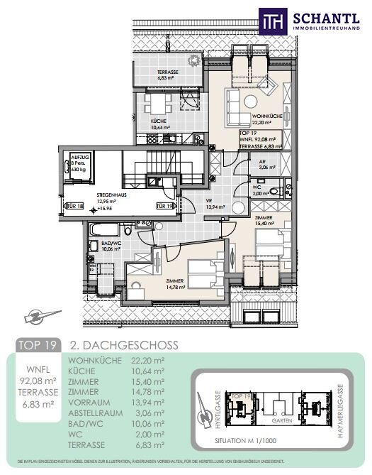 Wohnfläche: ca. 92,08m² + Terrasse: ca. 6,83m² + Kellerabteil + Garagenabteil optional