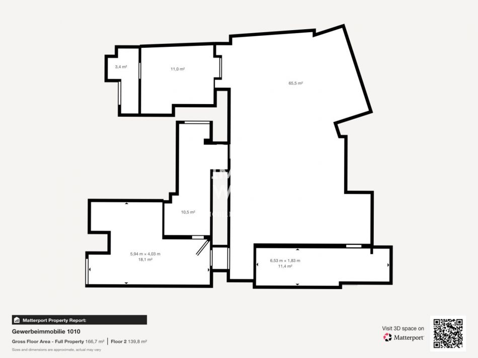 Die Gewerbefläche umfasst insgesamt ca. 128 m², aufgeteilt in ca. 104 m² im Erdgeschoss und ca. 24 m² im Kellergeschoss. Dank ihrer großzügigen Aufteilung und flexiblen Raumgestaltung eignet sich die Immobilie ideal für Unternehmen, die eine repräsentative Adresse suchen, sei es als Büro, Praxis, Showroom oder für kreative Geschäftskonzepte.