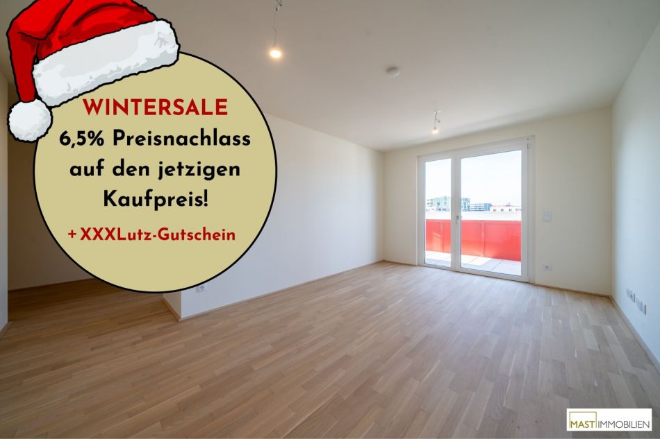 In der kalten Jahreszeit lassen wir die Preise schmelzen: Beim Kauf einer Eigentumswohnung in einem unserer Objekte in der Berresgasse ersparst du dir bis 31.3.2026 die Nebenkosten* und bekommst so jede Wohnung um 6,5% günstiger.
