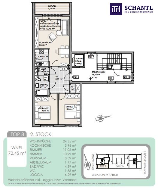 Wohnfläche: ca. 66,16m² + Loggia: ca. 6,29m² + Kellerabteil + Garagenabteil optional