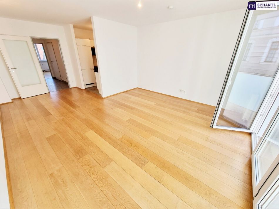 Ihre neue Neubauwohnung wird Sie restlos begeistern und teilt sich in einen großen Vorraum mit Platz für eine Garderobe und Stauraum, einen praktischen Abstellraum, ein großes Badezimmer mit Badewanne, WC und Waschmaschinenanschluss, ein 2. separates WC, 2 ruhige und geräumige, hofseitige Schlafzimmer, sowie ein helles Wohn-Esszimmer mit separater und voll ausgestatteter Küche und Zugang zur westseitigen Loggia.