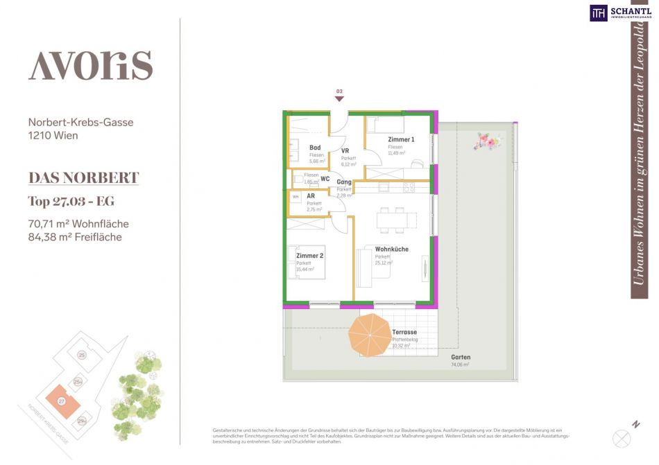 Wohnfläche: ca. 70,71m² + Terrasse: ca. 10,32m² + Garten: ca. 74,06m² + Kellerabteil