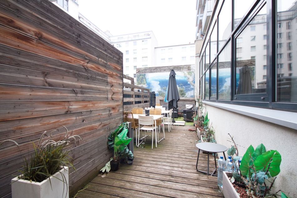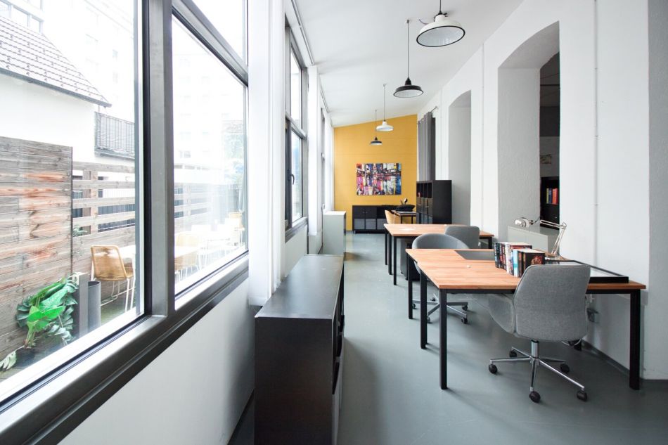 Die Terrasse in den Innenhof schafft zusätzlichen Freiraum für Pausen oder informelle Meetings im Grünen.