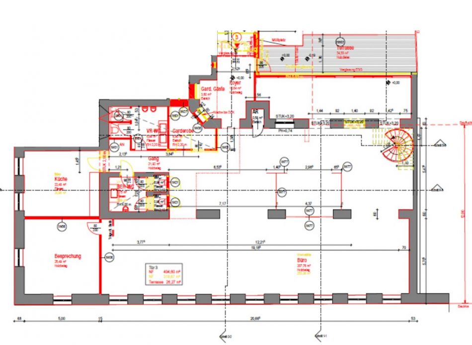 Dieses beeindruckende Ecklokal im Hochparterre eines klassischen Altbaus überzeugt mit über 200 m² offener Bürofläche, mehr als 3,5 m Raumhöhe und guter Belichtung durch viele Fenster mit Ausrichtung zur Davidgasse und Zur Spinnerin.