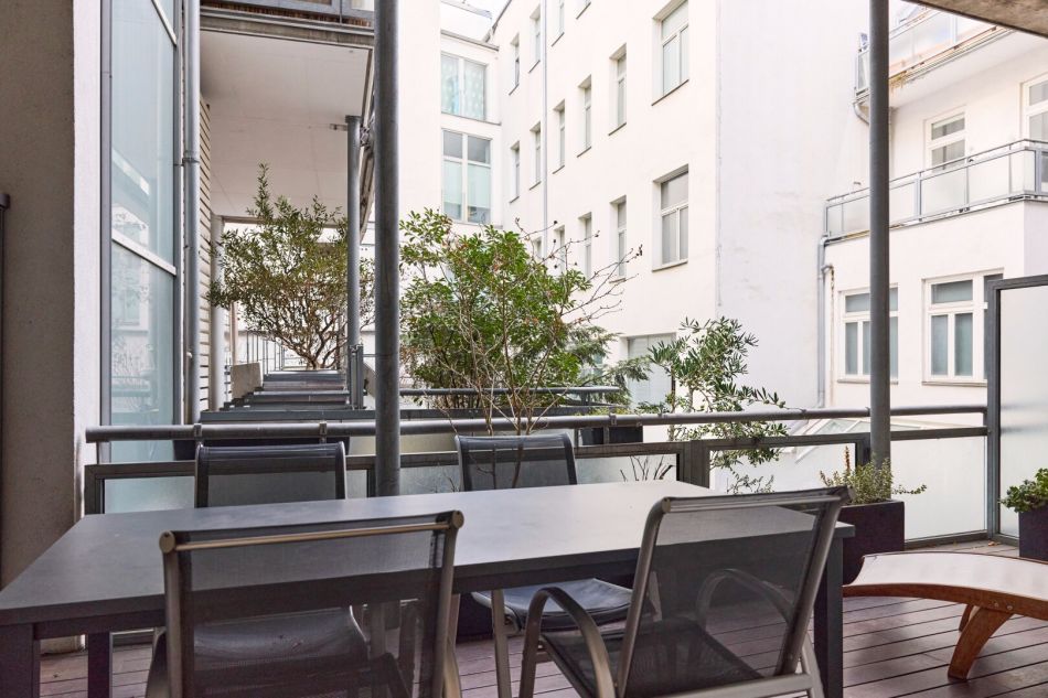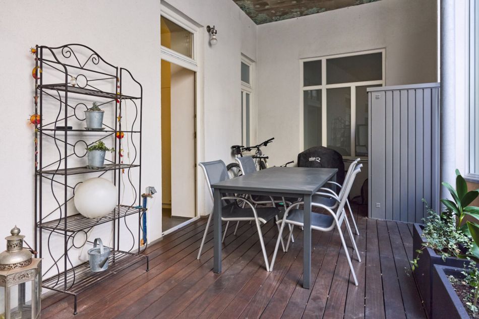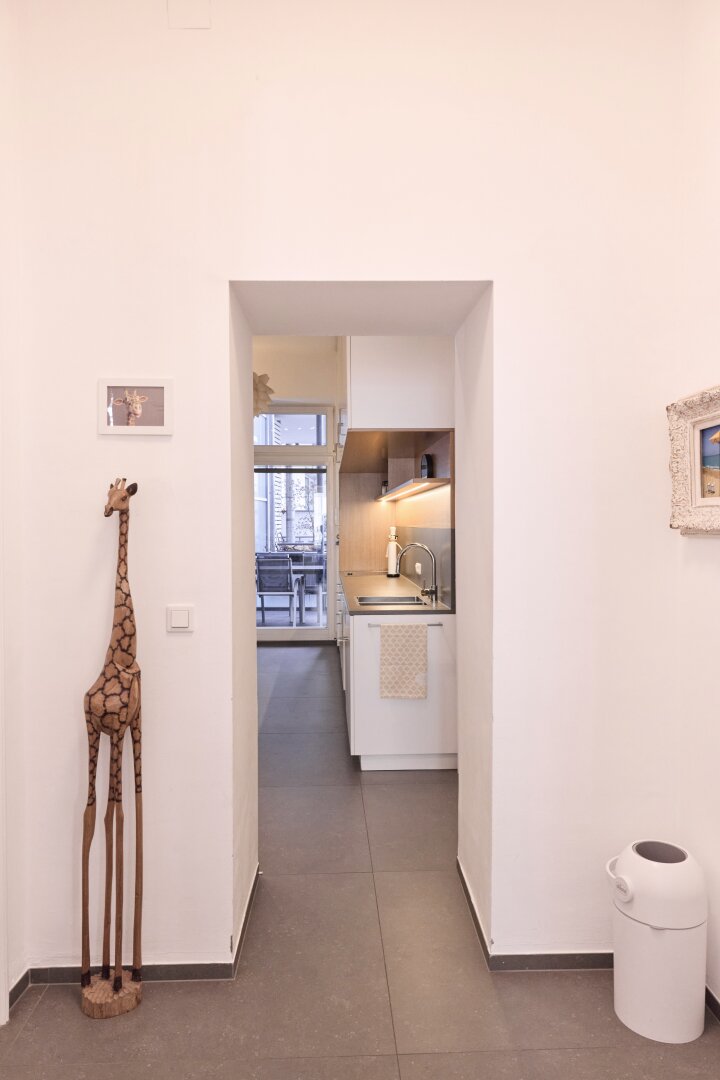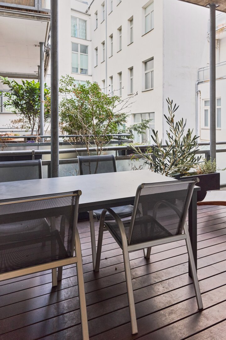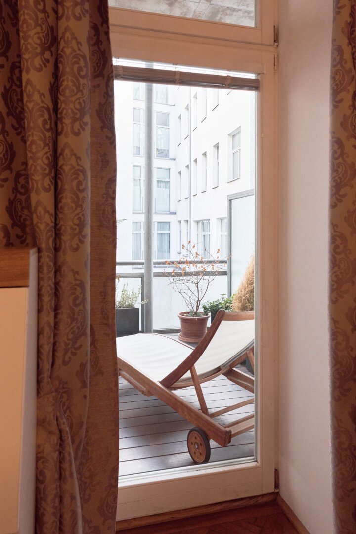 Das besondere Highlight ist der großzügige, hofseitig gelegene Balkon (begehbar von Küche und Schlafzimmer). der mitten in der Stadt eine private Ruheoase bietet und ausreichend Platz für entspannte Stunden im Freien schafft.