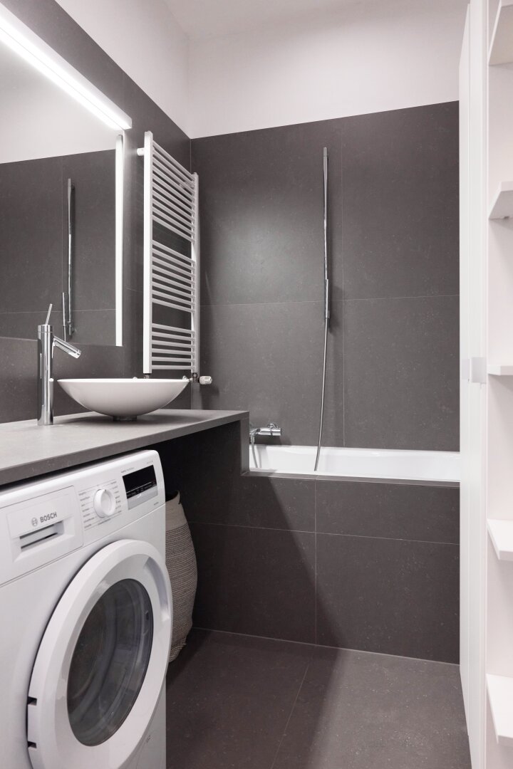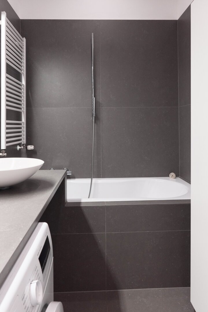 Großformatige Fliesen in Küche, Bad und Vorraum