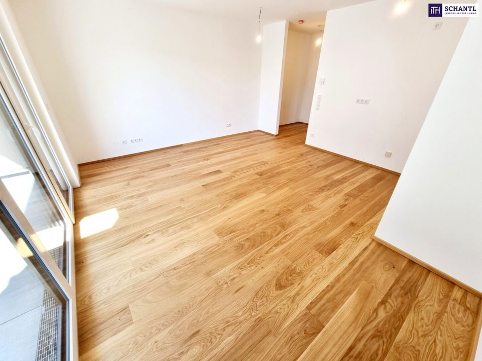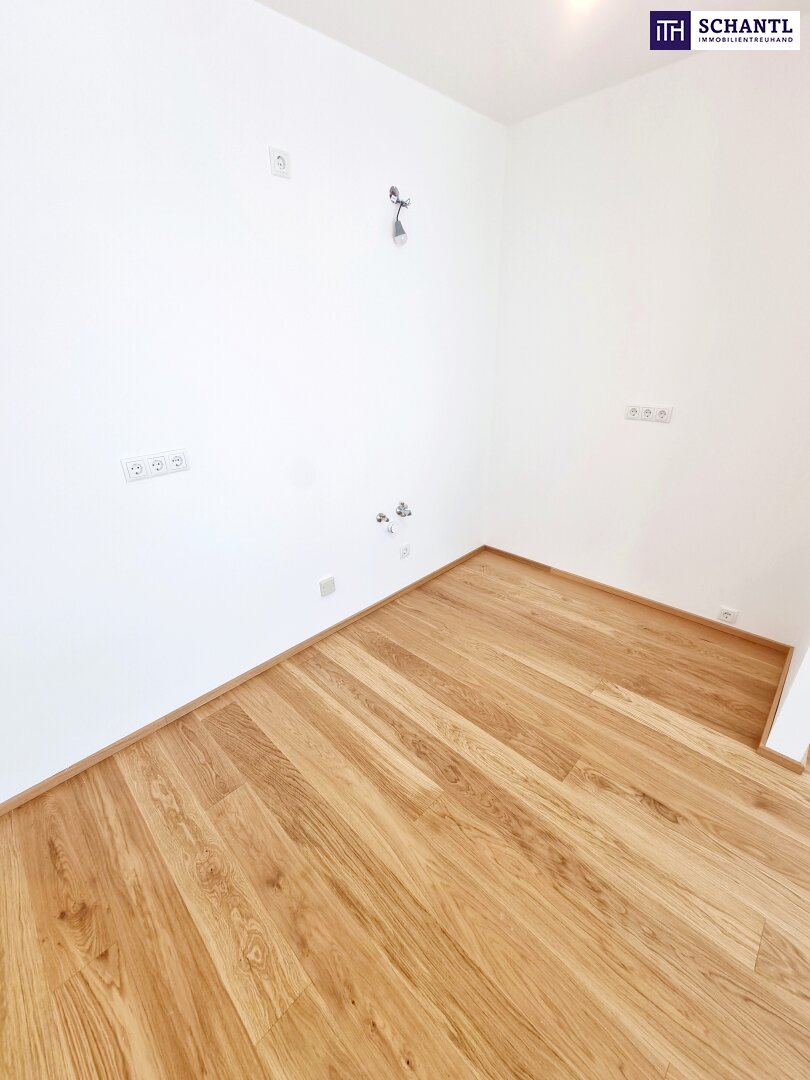 Ihre neue Wohnung bietet viel Platz auf wenigen Quadratmetern und teilt sich in einen kleinen Vorraumbereich, ein großzügiges und schönes Badezimmer mit Walk-In Dusche und WC, eine leicht separate und voll ausgestattete Einbauküche, sowie einen lichtdurchfluteten Wohn-Schlafbereich mit Zugang zum hofseitigen, ca. 10m² großen Traumbalkon mit Blick ins Grüne.