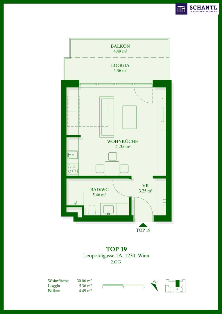Wohnfläche: ca. 30,06m² + Balkon: ca. 4,49m² + Loggia: ca. 5,36m²
