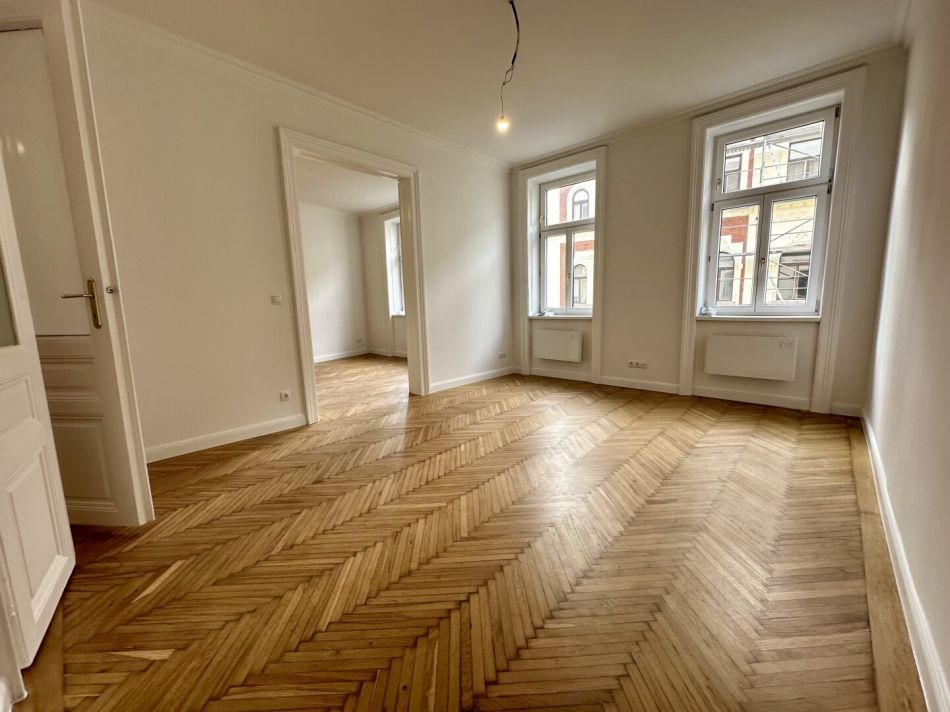 Altbaucharme trifft Stadtleben: 2,5-Zimmer Wohnung in 1180 WienDiese neu sanierte Altbau-Wohnung befindet sich in einem schönen Stil-Altbau in einer ruhigen Wohnlage des 18. Wiener Gemeindebezirkes. Die Fassade sowie das Stiegenhaus wurden vor Kurzem saniert und das Haus bietet den Eigentümern ein tolles Flair. Die Wohnung besticht durch die typischen Altbauelemente wie hohe Räumlichkeiten, wunderschönen Fischgrätparkettboden und den liebevoll renovierten, historischen Türen. Diese Wohnung bietet viel Platz und verleiht eine sehr angenehme Wohnatmosphäre, aufgeteilt auf 2 Zimmer, 1 Kabinett und eine separate Küche. Die zwei sehr großen und helle Wohnräume mit hohen Fenstern sind auf die ruhige Hofstattgasse ausgerichtet. Das dritte, kleine Zimmer/Kabinett bietet sich zum Beispiel perfekt als Home-Office oder Schrankraum an.