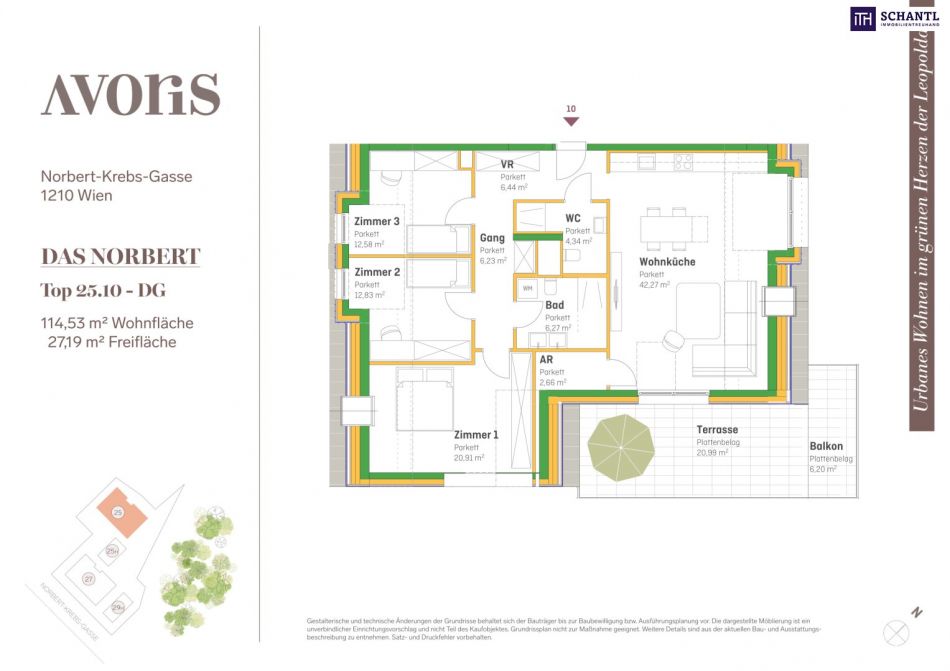 Wohnfläche: ca. 114,53m² + Terrasse: ca. 20,99m² + Balkon: ca. 6,20m² + Kellerabteil