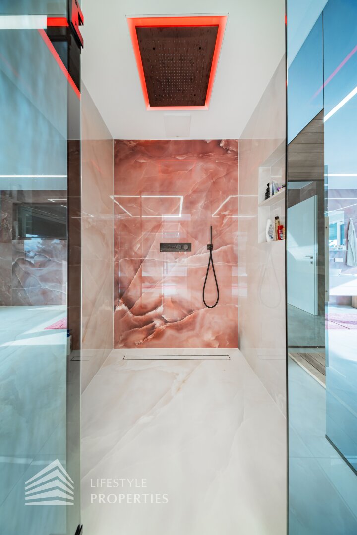 Technologisch befindet sich die Villa auf höchstem Stand: Eine leistungsstarke Wärmepumpe von Dimplex, eine Photovoltaikanlage mit 34 Panels und 14 kW Speicherbatterie, ein umfassendes Klimasystem von Daikin mit 13 Innengeräten, Smart-Home-Steuerung via iPad auf jeder Etage sowie ein Sicherheitssystem mit 13 Kameras, Großdisplay und Alarmanlage garantieren Komfort, Effizienz und maximale Diskretion.