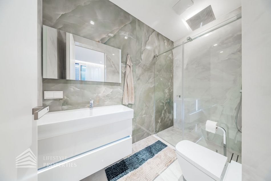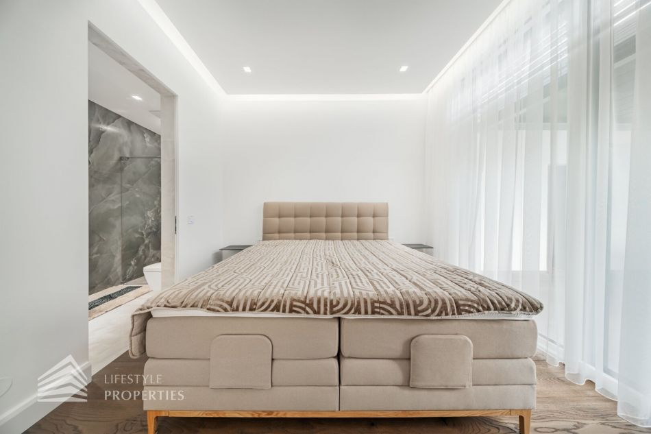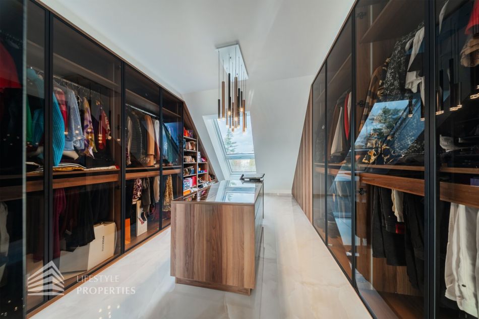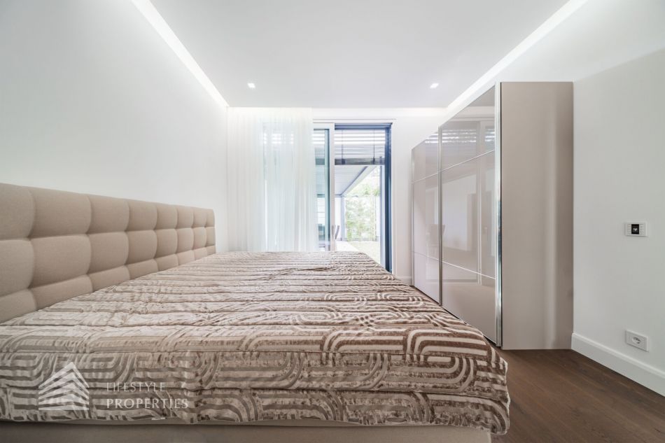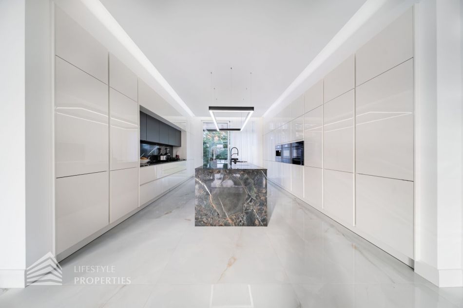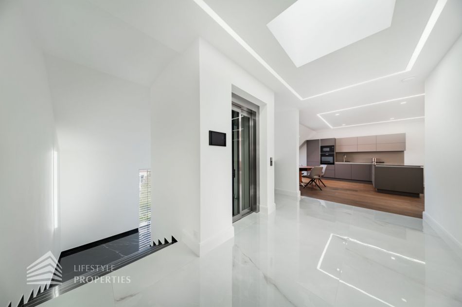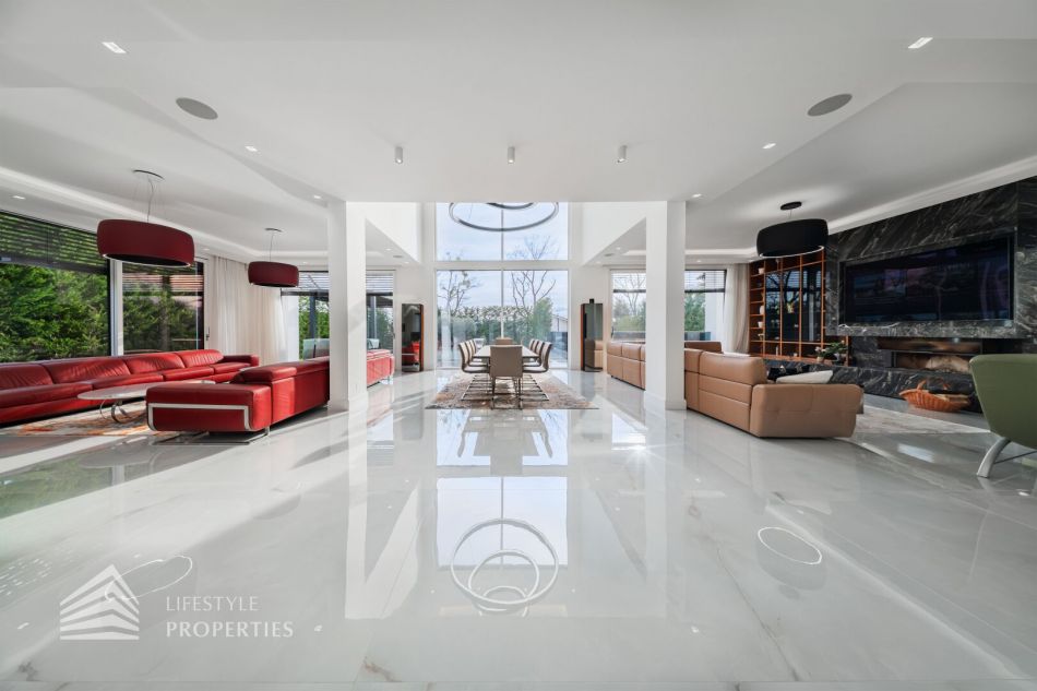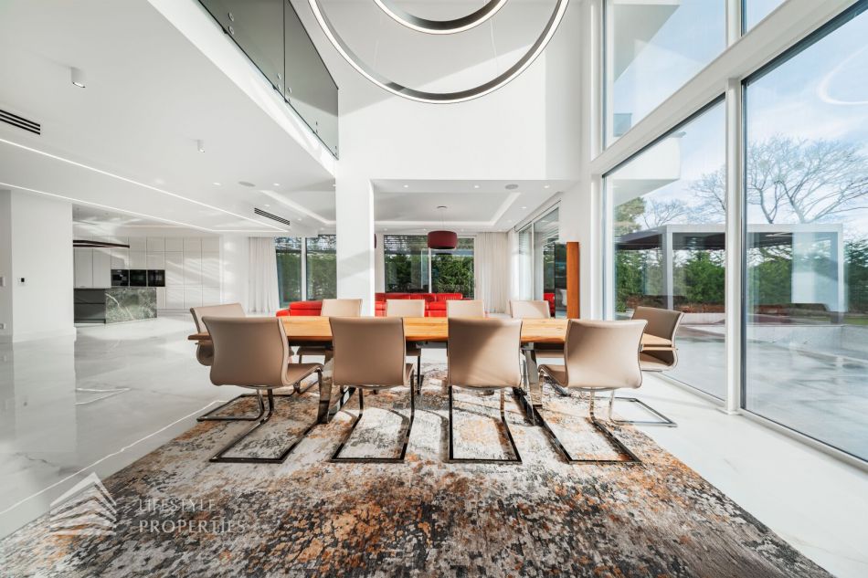 Mit insgesamt acht großzügig dimensionierten Zimmern eröffnet die Villa vielfältige Nutzungsmöglichkeiten – von repräsentativen Wohnsalons über exklusive Master-Suiten bis hin zu stilvollen Office- oder Gästebereichen. Die Architektur folgt einer klaren, zeitlosen Formensprache und setzt auf Licht, Raumwirkung und hochwertige Materialien in internationaler Qualität.