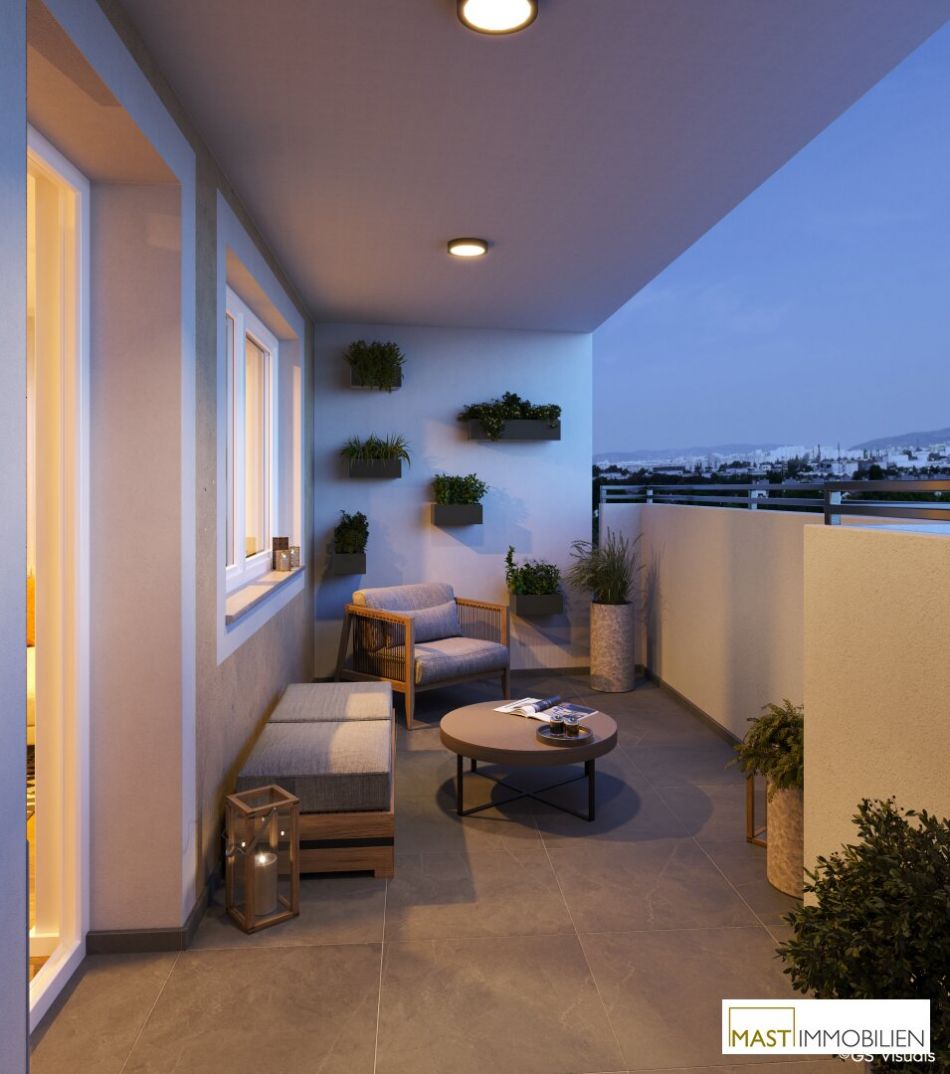 Die Wohnung befindet sich im 8. Obergeschoss und verfügt über 73,64 m² Wohnfläche + einen 8,50 m² großen Balkon und einen zweiten 8,64 m² großen Balkon/Loggia.