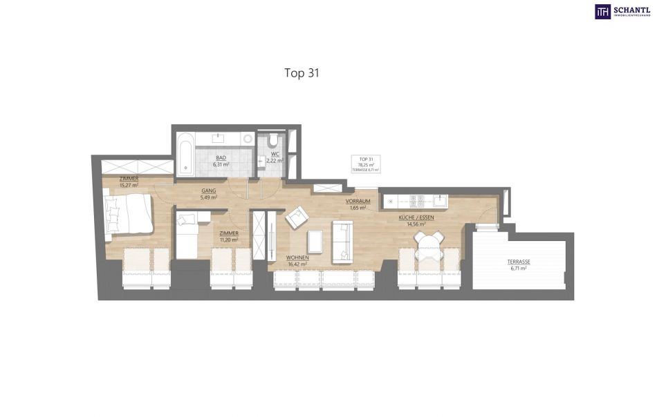 Wohnfläche: ca. 78,25 m² + Terrassen: ca. 6,71 m²