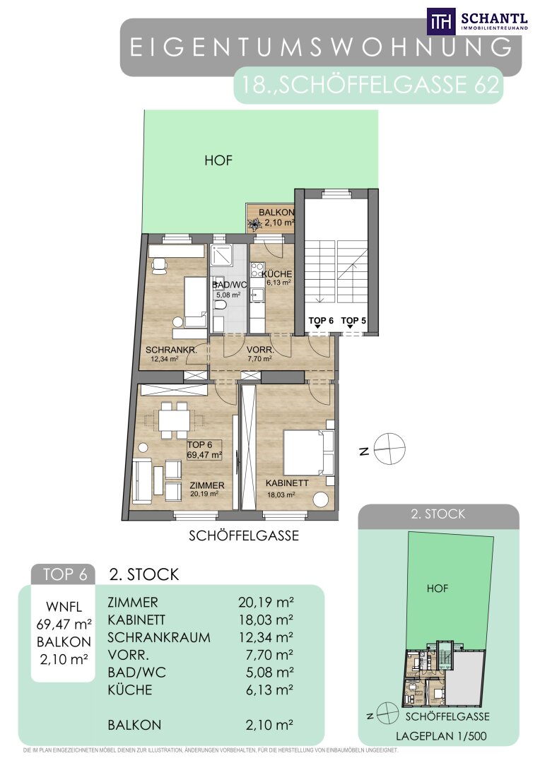 + TOP 6: 2.Stock / Wohnfläche ca. 69,47m² / Balkon ca. 2,10m² / Eigengarten ca. 103,45m² / € 599.000.-