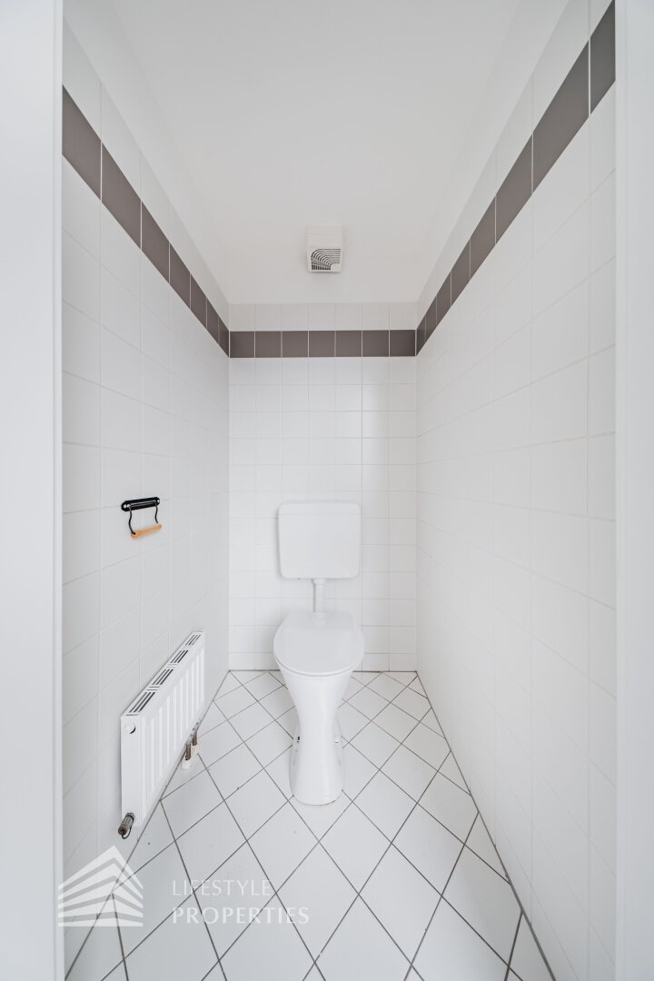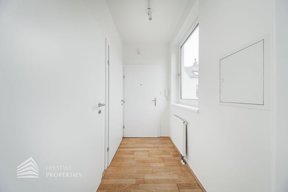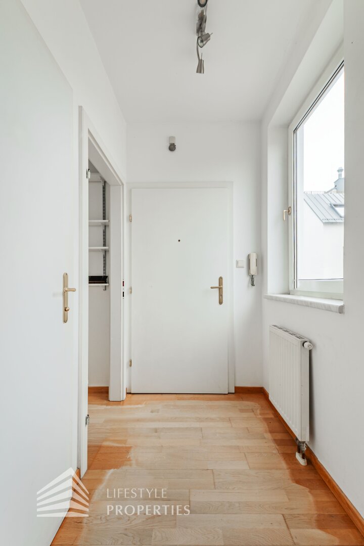 Sie betreten die Wohnung und befinden sich im Vorraum, links gelangen Sie in die helle Wohnküche. Das Schlafzimmer befindet sich gleich daneben. Das Badezimmer ist mit einer Badewanne, einem Waschbecken und einem Waschmaschinenanschluss ausgestattet. Das separate WC und der Abstellraum befinden sich auch im Vorraum. Die Wohnräume sind mit schönem Parkettboden ausgestattet und die Nassräume sind verfliest.